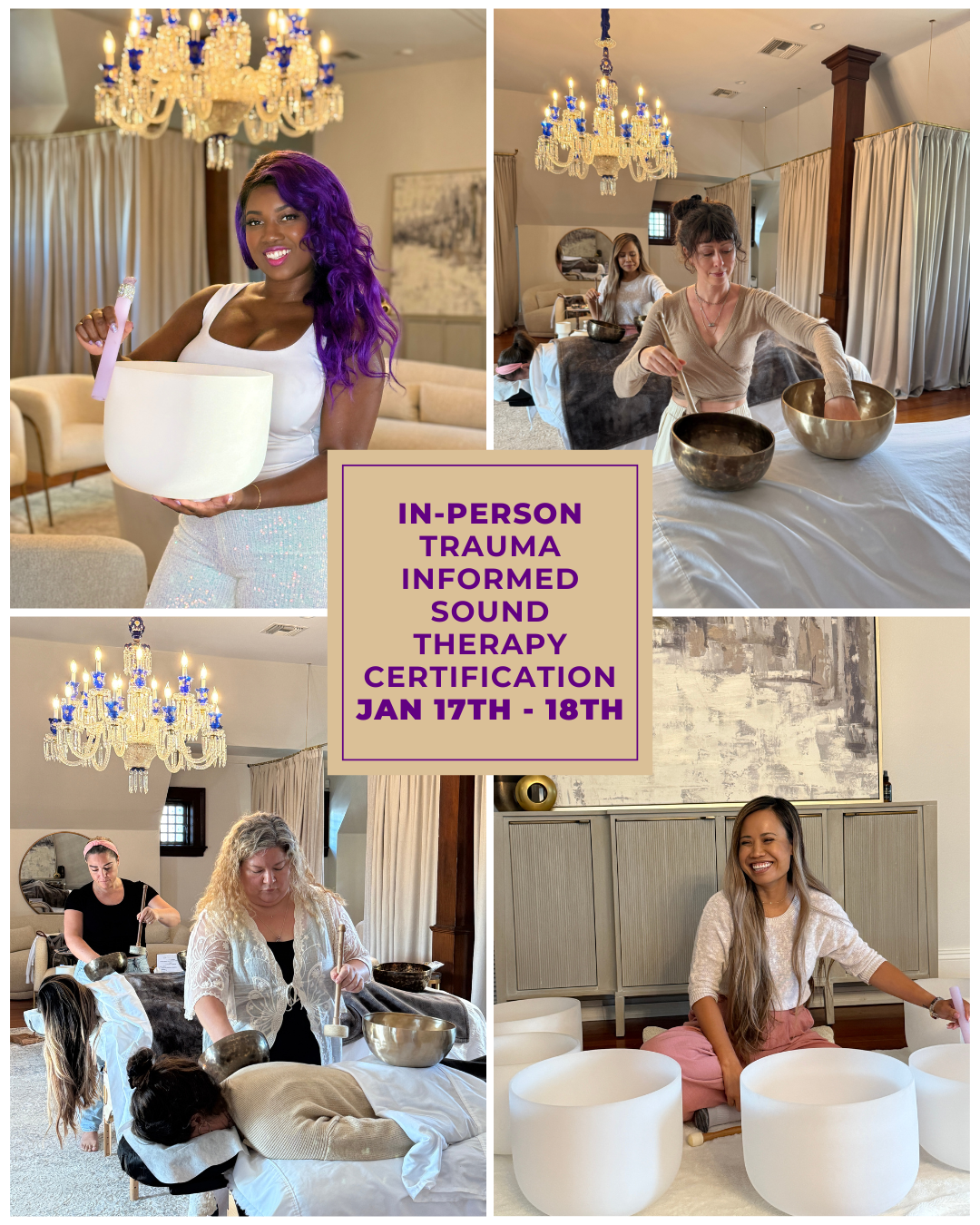 Trauma-informed Somatic Sound Therapy™ Practitioner Certification & Mentorship. Virtual training with the option to come into the studio and train in person.
