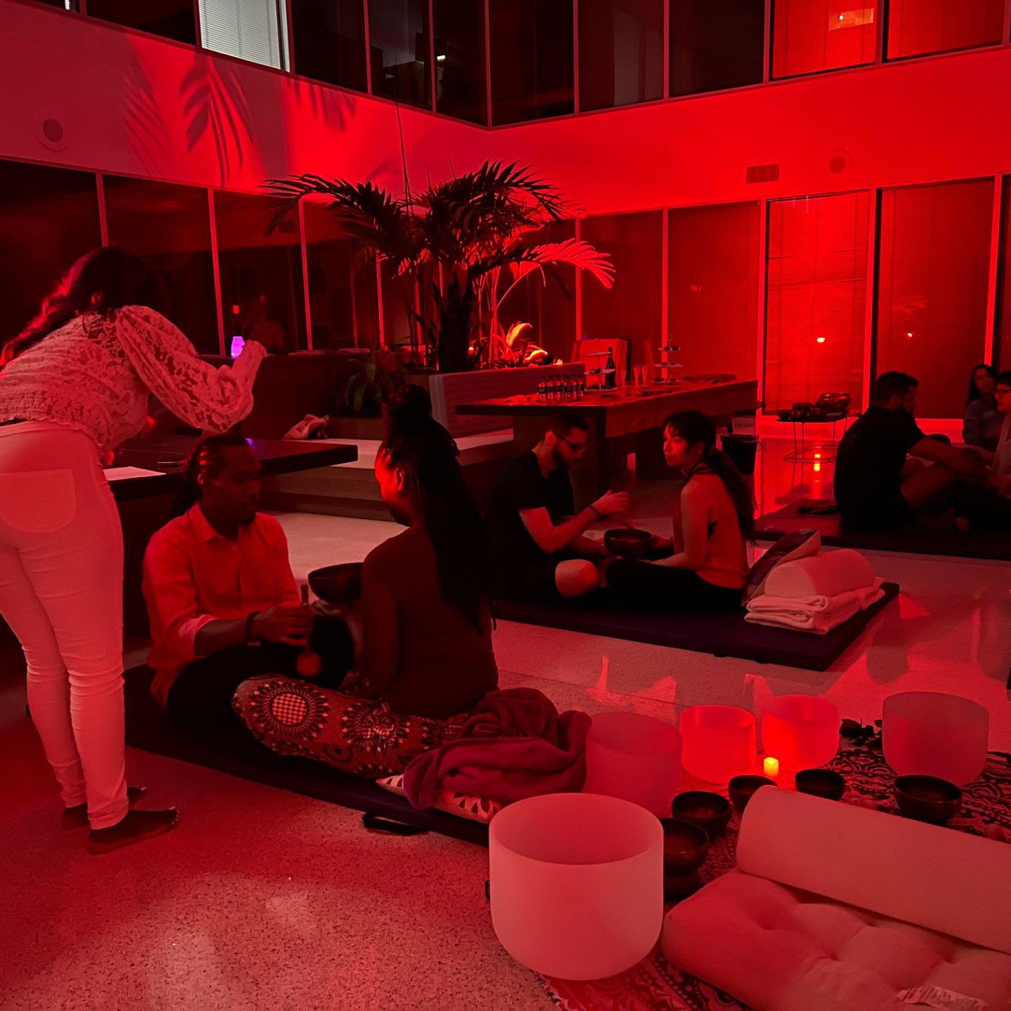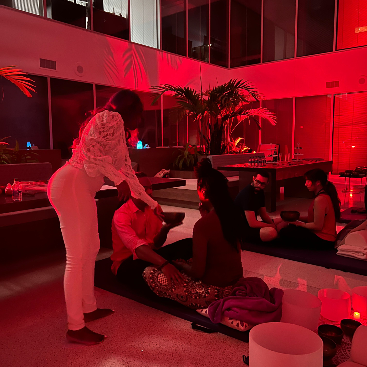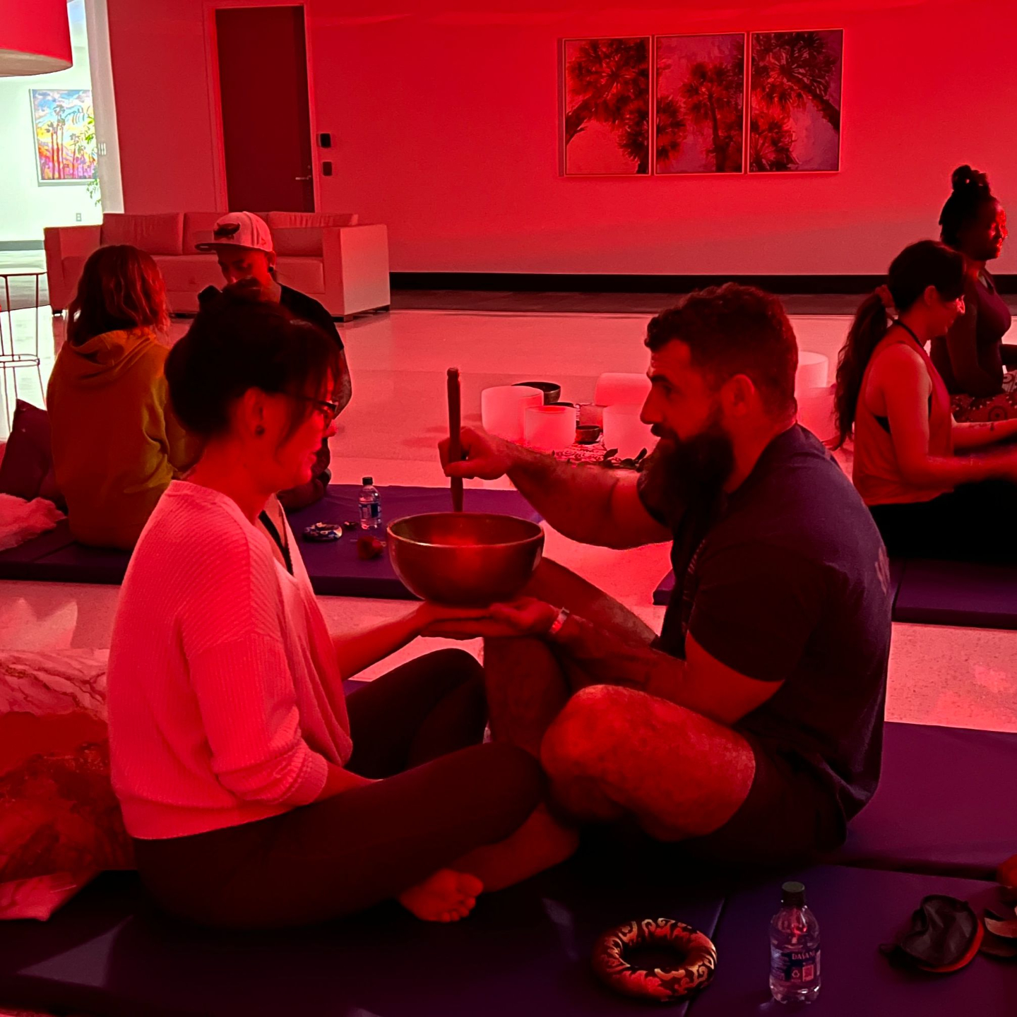 Even without hands-on touch, placing bowls on the body engages the nervous system.